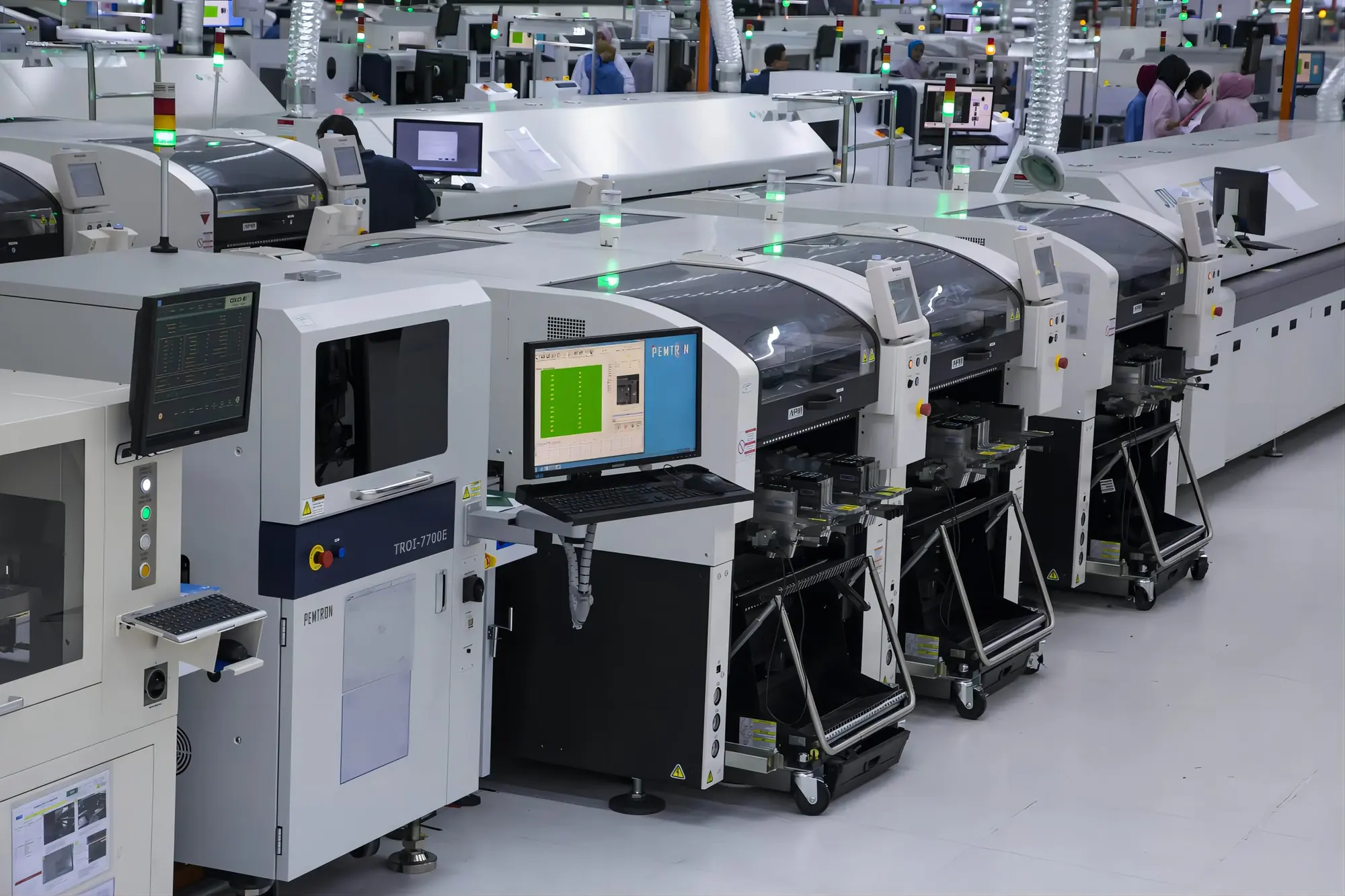 Self-operated PCBA manufacturing with 9 SMT + 6 DIP lines. Supported by B2B / B2C incubators and a mature industrial-park model adapted from the China-Egypt TEDA Cooperation Zone experience.